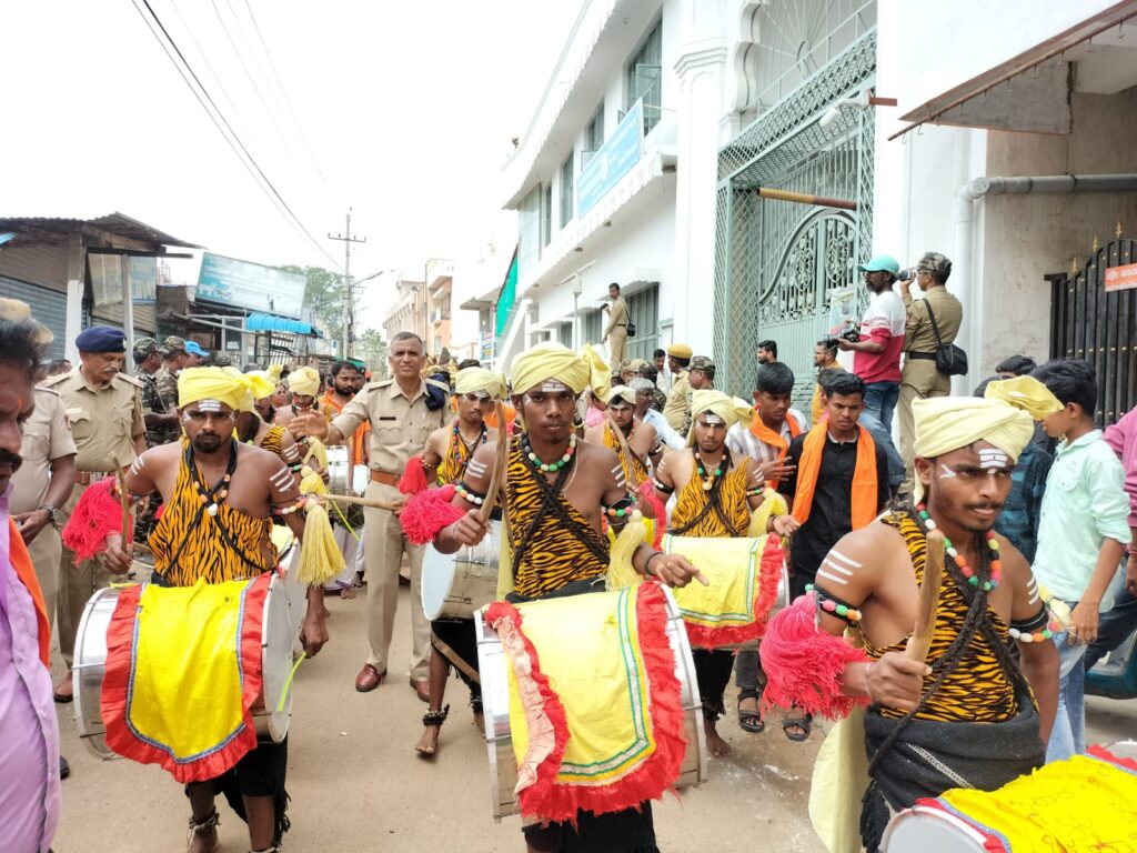 ರಾಜ್ಯದ ನಾನಾ ಭಾಗಗಳಿಂದ ಆಗಮಿಸಿದ ಜನಪದ ಕಲಾ ತಂಡಗಳಾದ ಮಂಗಳವಾದ್ಯ, ಗೊರವನ ಕುಣಿತ, ಡೊಳ್ಳು ಕುಣಿತ, ಕಂಸಾಳೆ, ವೀರಗಾಸೆ, ನಂದಿ ಕಂಬ, ಬ್ಯಾಂಡ್ಸೆಟ್, ಗಾರುಡಿ ಗೊಂಬೆ, ಪೂಜಾ ಕುಣಿತ, ಮಹಿಳಾ ವೀರಗಾಸೆ, ನಾಸಿಕ್ ಡೊಳ್ಳು, ಸೋಮನ ಕುಣಿತ, ಹುಲಿ ವೇಷ, ಮಂಗಳೂರು ಯಕ್ಷಗಾನ ಗೊಂಬೆ, ನಗಾರಿ, ತಮಟೆ ಹಾಗೂ ಇತರೆ ಕಲಾ ತಂಡಗಳೊಡನೆ ವಿಜೃಂಭಣೆಯಿ ಮೆರವಣಿಗೆ ನಗರದ ಪ್ರಮುಖ ಬೀದಿಗಳಲ್ಲಿ ನಡೆಯಿತು.