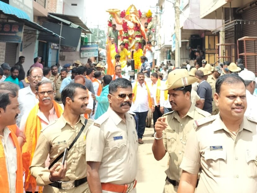 ಶ್ರೀ ಗುರುನಂಜಶೆಟ್ಟರ ಛತ್ರದ ಮುಂಭಾಗದಿಂದ ಹೊರಟು ಖಡಕ್ಪುರ ಮೊಹಲ್ಲಾ, ಡಾ. ಬಿ.ಆರ್. ಅಂಬೇಡ್ಕರ್ ಬೀದಿ, ಡೀವಿಯೇಷನ್ ರಸ್ತೆ, ದೇವಾಂಗ 3ನೇ ಬೀದಿ, ನಾಗಪ್ಪಶೆಟ್ಟರ ಚೌಕ, ದೊಡ್ಡ ಅಂಗಡಿ ಬೀದಿ, ಗಾಡಿಪೇಟೆ ಚೌಕ, ಮೇಗಲ ನಾಯಕರ ಬೀದಿ, ಶ್ರೀ ಕನ್ನಿಕಾ ಪರಮೇಶ್ವರಿ ದೇವಸ್ಥಾನದ ರಸ್ತೆ, ನಾಗಪ್ಪ ಶೆಟ್ಟರ ಚೌಕ, ದೊಡ್ಡ ಅಂಗಡಿ ಬೀದಿ, ಚಿಕ್ಕ ಅಂಗಡಿ ಬೀದಿ, ಸಂತೇ ಮರಹಳ್ಳಿ ವೃತ್ತ, ವೀರ ಮದಕರಿ ನಾಯಕರ ಬೀದಿ, ಶ್ರೀ ಭಗೀರಥ ಉಪ್ಪಾರ ಬಡಾವಣೆ, ಶ್ರೀ ಆದಿಶಕ್ತಿ ದೇವಸ್ಥಾನ, ಬಣಜಿಗರ ಬೀದಿ, ಭಮರಾಂಬ 2ನೇ ಕ್ರಾಸ್, ಭಮರಾಂಬ 1 ನೇ ಕ್ರಾಸ್, ಕುರುಬರ ಬೀದಿ, ಹಳ್ಳದ ಬೀದಿ, ಅಗ್ರಹಾರ ಬೀದಿ, ನಗರಸಭಾ ಕಛೇರಿ ರಸ್ತೆ, ಚಮಾಲ್ ಬೀದಿ, ಶ್ರೀ ವೀರಭದ್ರಸ್ವಾಮಿ ದೇವಸ್ಥಾನದ ಮುಂಭಾಗದಿಂದ ಜೈನರ ಬೀದಿ, ಕೊಳದ ಬೀದಿ ಮುಖಾಂತರ ಹೊರಟು ಶ್ರೀ ದೊಡ್ಡರಸನ ಕೊಳದಲ್ಲಿ ಬಾಣ ಬಿರುಸುಗಳ ಕಾರ್ಯಕ್ರಮಗಳೊಂದಿಗೆ ಶ್ರೀ ವಿದ್ಯಾ ಗಣಪತಿಯನ್ನು ಮಧ್ಯರಾತ್ರಿ ಗಂಟೆಗೆ ವಿಸರ್ಜಿಸಲಾಗುವುದು. ಸಾವಿರಕ್ಕೂ ಹೆಚ್ಚು ಪೆÇಲೀಸರು ಶ್ರೀ ಮೆರವಣಿಗೆಯಲ್ಲಿ ಭಾಗವಹಿಸಿದರು.