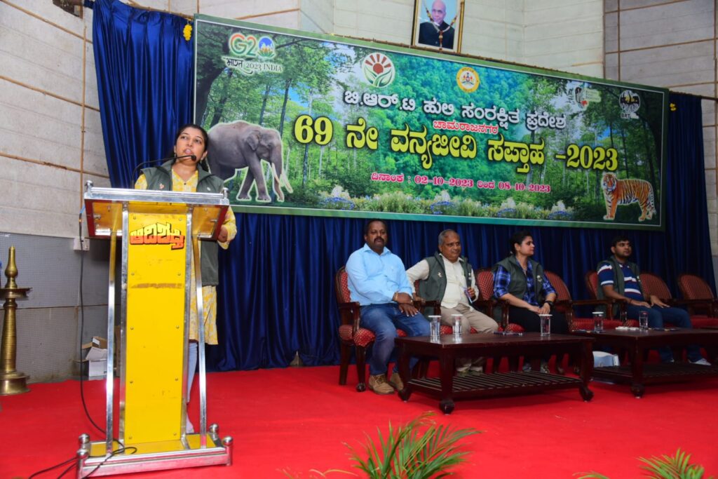 ಕಾರ್ಯಕ್ರಮದ ಅಧ್ಯಕ್ಷತೆ ವಹಿಸಿದ್ದ ಬಿ.ಆರ್.ಟಿ ಹುಲಿ ಸಂರಕ್ಷಿತ ಪ್ರದೇಶದ ಅರಣ್ಯ ಸಂರಕ್ಷಣಾಧಿಕಾರಿ ದೀಪಾ ಜೆ. ಕಂಟ್ರಾಕ್ಟರ್ ಅವರು ಮಾತನಾಡಿ ಹಸಿರೆ ಉಸಿರಾಗಿರುವುದರಿಂದ ಅರಣ್ಯ, ವನ್ಯಜೀವಿ ಸಂರಕ್ಷಣೆ ಇಂದು ಅನಿವಾರ್ಯವಾಗಿದೆ. ಪ್ರಾಣಿಗಳು ಆಹಾರ ಅರಸಿ ನಾಡಿಗೆ ಬರುತ್ತವೆ. ಮಾನವ-ಕಾಡುಪ್ರಾಣಿಗಳ ಸಂಘರ್ಷ ತಡೆಯಲು ಹೆಚ್ಚಾಗಿ ಅರಣ್ಯಗಳನ್ನು ಬೆಳೆಸಬೇಕು. ಅರಣ್ಯ ಒತ್ತುವರಿ ತಡೆಯಬೇಕು. ಮುಂದಿನ ಪೀಳಿಗೆಗೆ ಕಾಡುಗಳನ್ನು ಉಳಿಸುವ ಸಲುವಾಗಿ ಅರಣ್ಯ ಸಂರಕ್ಷಣೆ ಕುರಿತ ಹಲವಾರು ಜಾಗೃತಿ ಕಾರ್ಯಕ್ರಮಗಳನ್ನು ಹಮ್ಮಿಕೊಳ್ಳಲಾಗುತ್ತದೆ ಎಂದು ತಿಳಿಸಿದರು.