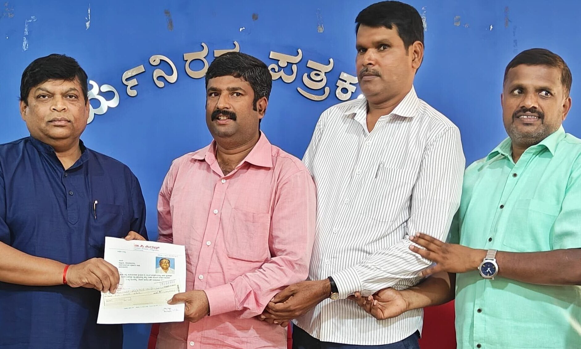 ನಗರದ ಪತ್ರಕರ್ತರ ಭವನದಲ್ಲಿ ಗುರುವಾರ ಸಂಘದ ಅಧ್ಯಕ್ಷ ದೇವರಾಜು ಕಪ್ಪಸೋಗೆ ಅವರಿಗೆ ಚೆಕ್ ನೀಡಿ ಮಾತನಾಡಿದ ಅವರು, ಪತ್ರಿಕಾ ರಂಗ ಸಮಾಜದ ಕಣ್ಣುಗಳಿದ್ದಂತೆ. ಇಲ್ಲಿನ ಆಗು ಹೋಗುಗಳನ್ನು ತಿಳಿಸುತ್ತ ಎಲ್ಲಾ ರಂಗಗಳ ಲೋಪ ಎತ್ತಿ ಹಿಡಿಯುವಲ್ಲಿ ಶ್ರಮಿಸಿ, ದುಡಿಯುವ ಪತ್ರಕರ್ತರ ಸೇವೆ ಅಮೂಲ್ಯವಾದುದು ಎಂದರು.