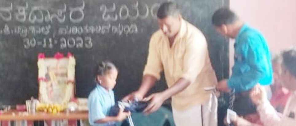 ಗ್ರಾಮದ ಹಿರಿಯ ಮುಖಂಡರಾದ ಎಂ.ಎಸ್. ಮಾದಯ್ಯ ಅವರ ಪುತ್ರ ಉದ್ಯಮಿ ಎಂ. ಗುರುಪ್ರಸಾದ್ ಅವರು ಕನಕದಾಸರ ಭಾವಚಿತ್ರಕ್ಕೆ ಪುಷ್ಪ ನಮನ ಸಲ್ಲಿಸಿ, ಮಕ್ಕಳಿಗೆ ಸಮವಸ್ತ್ರ, ಟೈ, ಬೆಲ್ಟ್, ಗುರುತಿನ ಕಾರ್ಡ್ ಹಾಗು ಸಿಹಿ ವಿತರಣೆ ಮಾಡಿದರು.