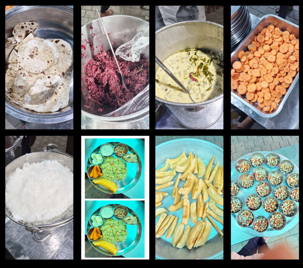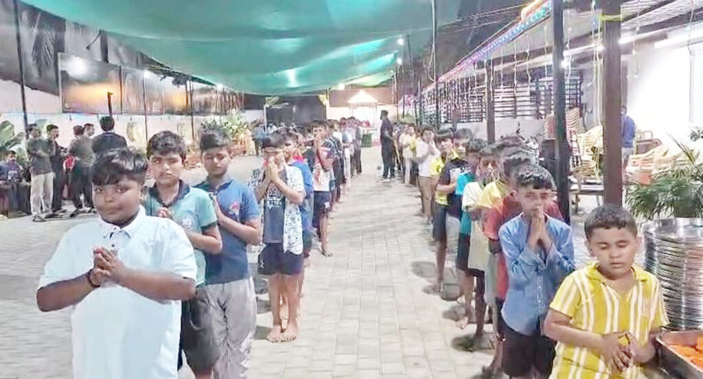 ಪ್ರಸಾದ ಸ್ವೀಕರಿಸಿದ ಬಳಿಕ, ಊಟ ಮಾಡಿದ ವಿದ್ಯಾರ್ಥಿಗಳು, ಅನ್ನ, ಮುದ್ದೆ, ಸಂಬಾರ್, ಪಲ್ಯ, ತರಕಾರಿ ಸಲಾಡ್ ಸೇವಿಸಿದರು.