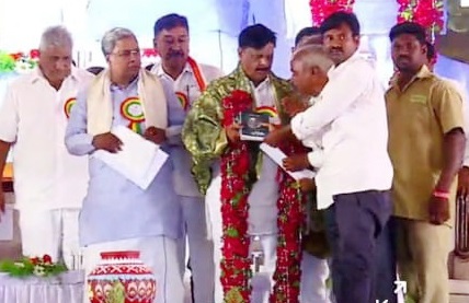 ನಗರದ ಡಾ. ಬಿ.ಆರ್ ಅಂಬೇಡ್ಕರ್ ಜಿಲ್ಲಾ ಕ್ರೀಡಾಂಗಣದಲ್ಲಿ ಜಿಲ್ಲಾಡಳಿತ, ಜಿಲ್ಲಾ ಪಂಚಾಯತ್ ಹಾಗೂ ವಿವಿಧ ಇಲಾಖೆಗಳ ಸಹಯೋಗದಲ್ಲಿ ಹಮ್ಮಿಕೊಳ್ಳಲಾಗಿದ್ದ ಚಾಮರಾಜನಗರ ಜಿಲ್ಲೆಯ ಸರ್ಕಾರದ ವಿವಿಧ ಗ್ಯಾರಂಟಿ ಯೋಜನೆಗಳ ಫಲಾನುಭವಿಗಳ ಸಮಾವೇಶದಲ್ಲಿ ಮುಖ್ಯಮಂತ್ರಿ ಸಿದ್ದರಾಮಯ್ಯ ಹಾಗೂ ಸಮಾಜ ಕಲ್ಯಾಣ ಇಲಾಖೆ ಸಚಿವರಾದ ಹೆಚ್.ಸಿ.ಮಹದೇವಪ್ಪ ಅವರನ್ನು ಹಾರ, ಶಾಲು ಹಾಕುವ ಮೂಲಕ ಆತ್ಮೀಯವಾಗಿ ಅಭಿನಂದಿಸಲಾಯಿತು.