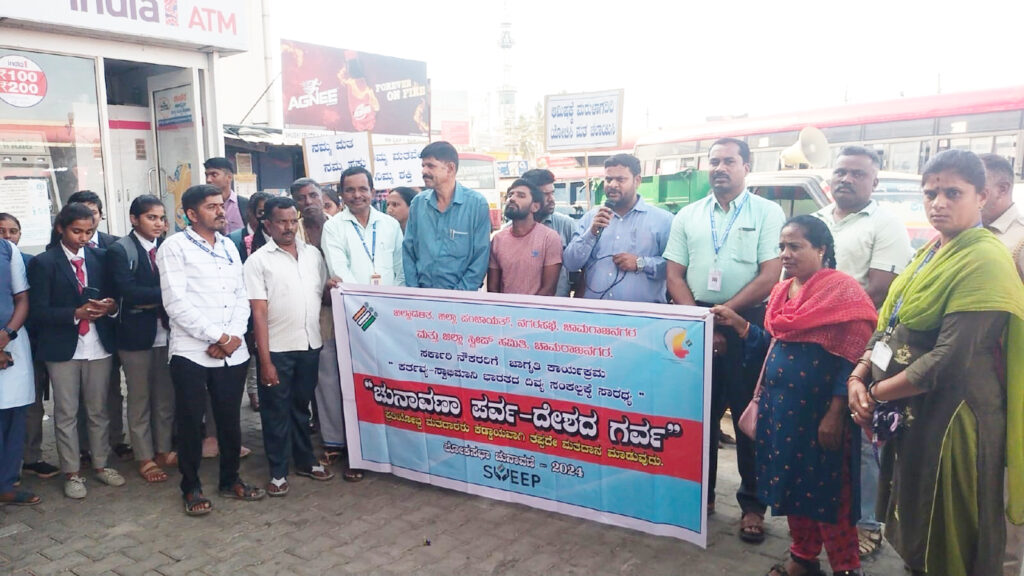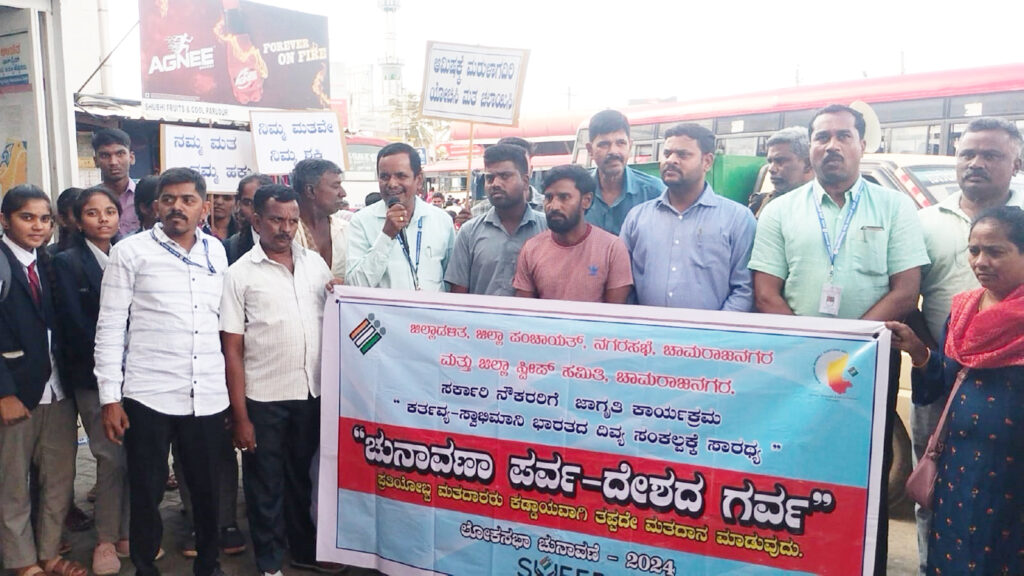ನಗರದ ಕೆಎಸ್ಆರ್ಟಿಸಿ ಬಸ್ ನಿಲ್ದಾಣದಲ್ಲಿ ಜಿಲ್ಲಾಡಳಿತ, ಜಿಲ್ಲಾ ಪಂಚಾಯತ್, ನಗರಸಭೆ, ಮತ್ತು ಜಿಲ್ಲಾ ಸ್ವೀಪ್ ಸಮಿತಿ ವತಿಯಿಂದ ಆಯೋಜಿಸಲಾಗಿದ್ದ ಮತದಾನ ಜಾಗೃತಿ, ಅರಿವು ಕಾರ್ಯಕ್ರಮದಲ್ಲಿ ನಗರಸಭೆ ಪೌರಾಯುಕ್ತ ರಾಮದಾಸ್ ಮಾತನಾಡಿ,