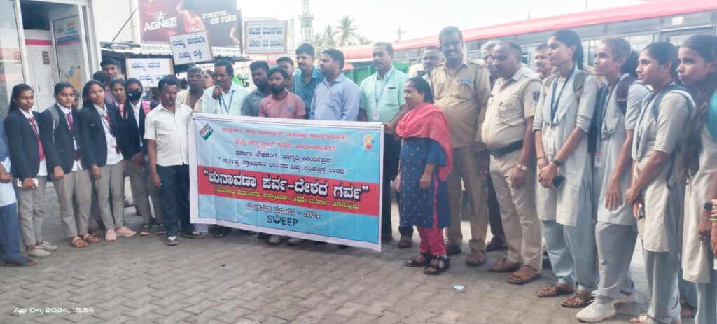 ಕರ್ನಾಟಕ ರಾಜ್ಯದಲ್ಲಿ ಎರಡು ಹಂತದಲ್ಲಿ ಮತದಾನ ನಡೆಯಲಿದೆ. ಏಪ್ರಿಲ್ 26ಕ್ಕೆ ಮೊದಲ ಹಂತ, ಮೇ 7ಕ್ಕೆ 2ನೇ ಹಂತದ ಮತದಾನ ನಡೆಯಲಿದ್ದು, ಪ್ರತಿಯೊಬ್ಬರೂ ಕೂಡಾ ತಮ್ಮ ಮತದಾನ ಹಕ್ಕನ್ನು ಚಲಾಯಿಸಬೇಕು ಎಂದು ಅರಿವು ಮೂಡಿಸಿದರು.