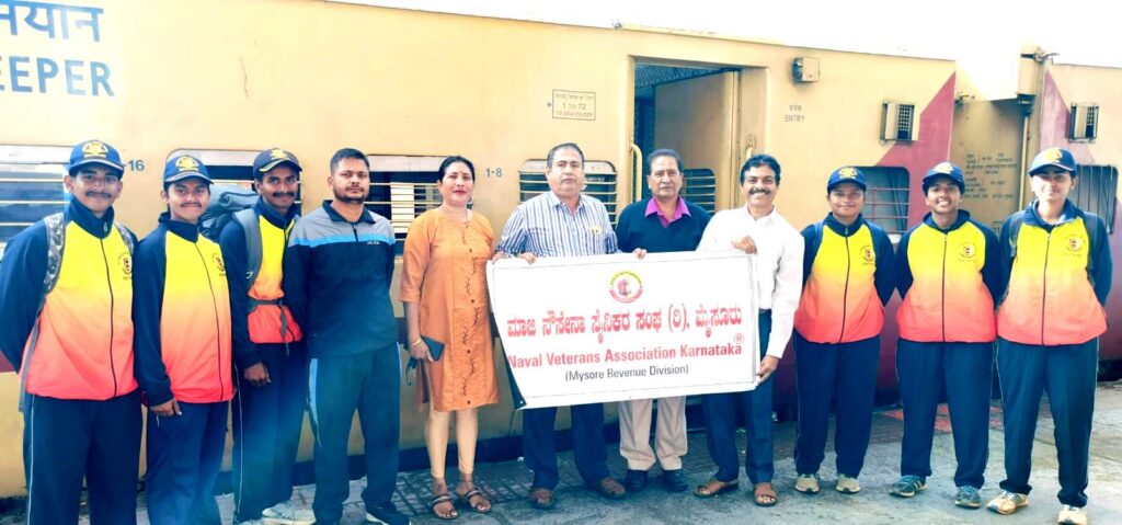 ಮೈಸೂರು : ಒರಿಸ್ಸಾದ ನೌಕಾನೆಲೆ ಮತ್ತು ತರಬೇತಿ ಕೇಂದ್ರ ಐಎನ್ಎಸ್ ಚಿಲ್ಕಾದಲ್ಲಿ ಸೆ.8 ರಿಂದ 16 ರವರೆಗೆ ನಡೆಯುವ ಅಖಿಲ ಭಾರತ ಯಾಚಿಂಗ್ ರೆಗಟ್ಟಾ-2025 ಚಾಂಪಿಯನ್ಶಿಪ್ನಲ್ಲಿ ಭಾಗವಹಿಸಲು ಆಯ್ಕೆಯಾಗಿರುವ ಕರ್ನಾಟಕ ಮತ್ತು ಗೋವಾ ನಿರ್ದೇಶನಾಲಯದ ನೌಕಾ ಪಡೆಯ 6 ಜನ ಎನ್ಸಿಸಿ ಕೆಡೆಟ್ಗಳು ಮತ್ತು ಒಬ್ಬ ಬೋಧಕರನ್ನು ನಗರದ ರೈಲು ನಿಲ್ದಾಣದಲ್ಲಿ ನೌಕಾಪಡೆಯ ನಿವೃತ್ತ ಅಧಿಕಾರಿಗಳು ಶುಭ ಹಾರೈಸಿ, ಹೃದಯಸ್ಪರ್ಶಿ ಬೀಳ್ಕೊಡುಗೆ ನೀಡಿದರು.