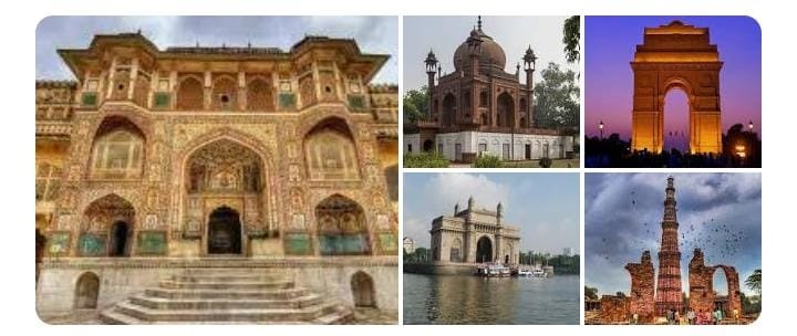 ಹಲವು ಸ್ಮಾರಕಗಳಿವೆ ಅವುಗಳಲ್ಲಿ ಪ್ರಮುಖವಾದವುಗಳು…. ಅಮ್ಬರ್ ಕೋಟೆ ಜೈಪುರದಲ್ಲಿ, ತಾಜ್ಮಹಲ್ ಆಗ್ರಹದಲ್ಲಿ, ಇಂಡಿಯಾ ಗೇಟ್ ದೆಹಲಿಯಲ್ಲಿ, ಗೇಟ್ ಆಫ್ ಇಂಡಿಯಾ ಮುಂಬೈನಲ್ಲಿ, ಕುತುಬ್ ಮಿನಾರ್ ದೆಹಲಿಯಲ್ಲಿ, ಚಾರ್ಮಿನಾರ್ ಹೈದರಾಬಾದ್ ನಲ್ಲಿ, ಹವಾ ಮಹಲ್ ಜೈಪುರದಲ್ಲಿ, ಅಜಂತಾ ಗುಹೆಗಳು ಔರಂಗಬಾದ್ ನಲ್ಲಿ ಹೀಗೆ ಪಟ್ಟಿ ಬೆಳೆಯುತ್ತಲೇ ಹೋಗುತ್ತದೆ.