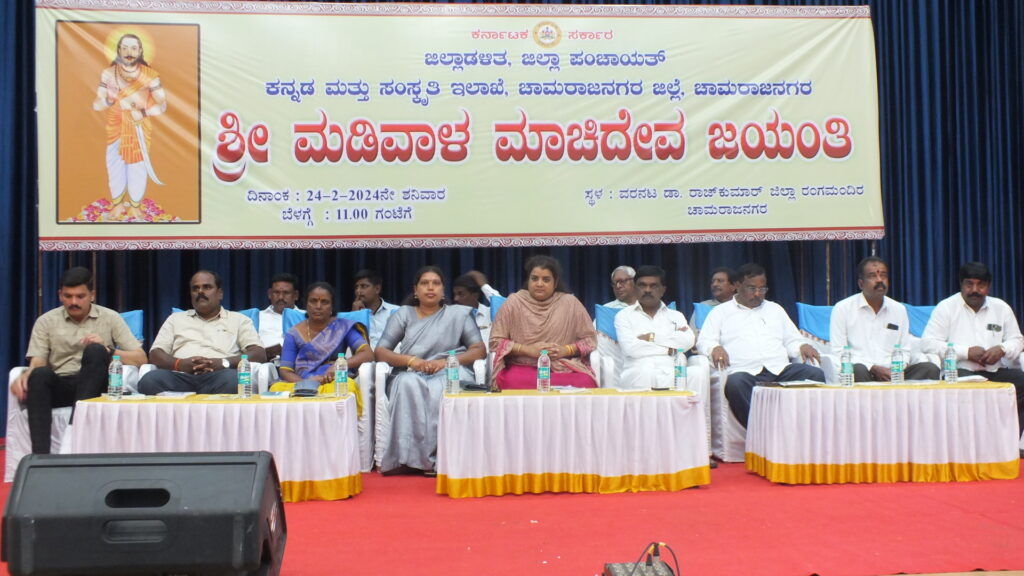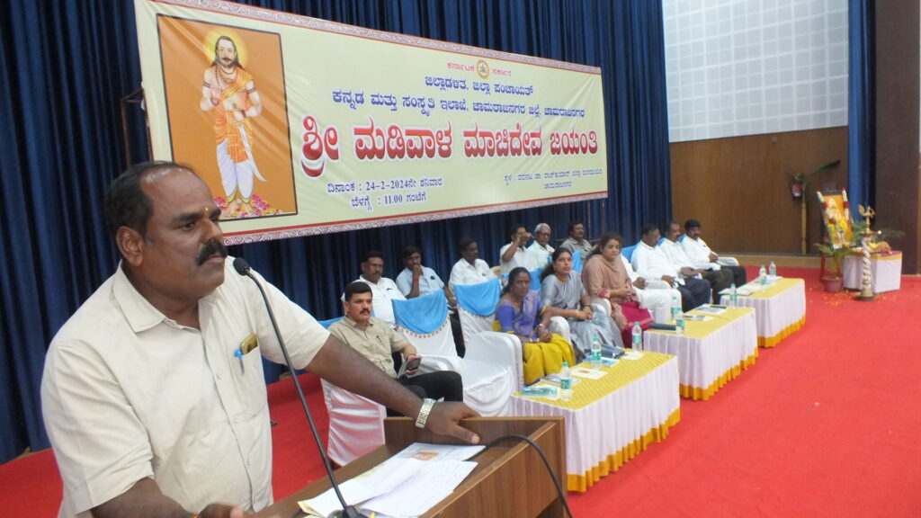 ನಗರದ ವರನಟ ಡಾ. ರಾಜ್ಕುಮಾರ್ ಜಿಲ್ಲಾ ರಂಗಮಂದಿರದಲ್ಲಿಂದು ಜಿಲ್ಲಾಡಳತ, ಜಿಲ್ಲಾ ಪಂಚಾಯತ್ ಹಾಗೂ ಕನ್ನಡ ಮತ್ತು ಸಂಸ್ಕøತಿ ಇಲಾಖೆಯ ಸಹಯೋಗದಲ್ಲಿ ಆಯೋಜಿಸಲಾಗಿದ್ದ ‘ಶ್ರೀ ಮಡಿವಾಳ ಮಾಚಿದೇವ’ ಜಯಂತಿ ಕಾರ್ಯಕ್ರಮದಲ್ಲಿ ಮುಖ್ಯ ಭಾಷಣ ಮಾಡಿ ಅವರು ಮಾತನಾಡಿದರು.