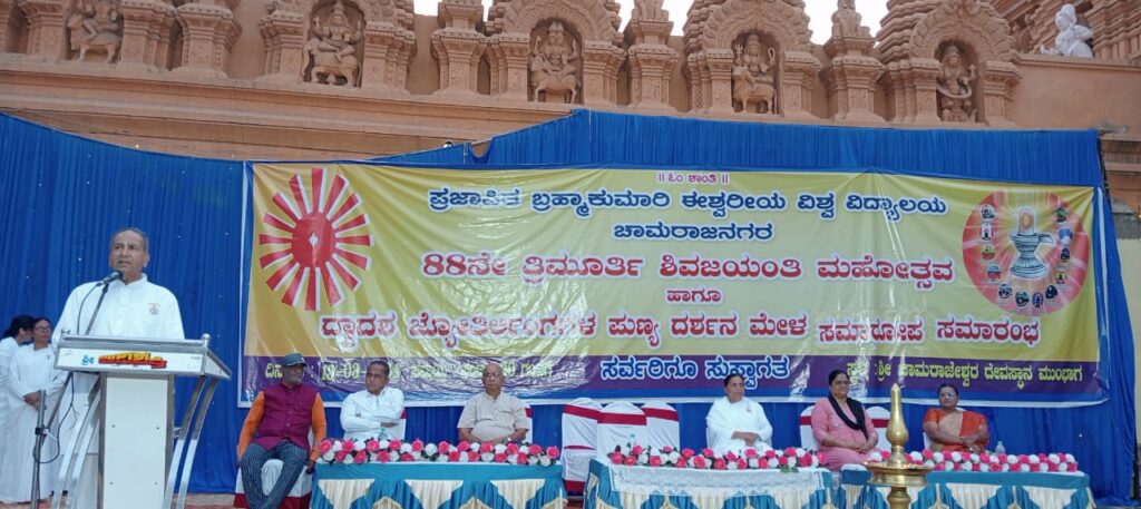 ಅವರು ಚಾಮರಾಜೇಶ್ವರ ದೇವಾಲಯದ ಮುಂಭಾಗ ಪ್ರಜಾಪಿತ ಬ್ರಹ್ಮಾಕುಮಾರಿ ಈಶ್ವರೀಯ ವಿಶ್ವ ವಿದ್ಯಾಲಯದ ಆಶ್ರಯದಲ್ಲಿ ಹಮ್ಮಿಕೊಂಡಿದ್ದ ದ್ವಾದಶ ಜ್ಯೋತಿರ್ಲಿಂಗಗಳ ಪುಣ್ಯದರ್ಶನದ ಸಮಾರೋಪ ಸಮಾರಂಭದಲ್ಲಿ ಮಾತನಾಡುತ್ತ ಗಡಿಭಾಗವಾದ ಚಾಮರಾಜನಗರದಲ್ಲಿ ದ್ವಾದಶ ಜ್ಯೋತಿರ್ಲಿಂಗಗಳ ಪುಣ್ಯದರ್ಶನದ ವ್ಯವಸ್ಥೆಯನ್ನು ಮೊಟ್ಟಮೊದಲಿಗೆ ರೂಪಿಸಿ ಲಕ್ಷಾಂತರ ಜನ ದ್ವಾದಶ ಜ್ಯೋತಿರ್ಲಿಂಗಗಳ ಪುಣ್ಯ ದರ್ಶನ ಮಾಡಿ ಪುನೀತರಾಗಿರುವುದು ಬಹಳ ಸಂತೋಷವೆಂದು ತಿಳಿಸಿ ,ಪ್ರಜಾಪಿತ ಬ್ರಹ್ಮಾಕುಮಾರಿ ಈಶ್ವರೀಯ ವಿಶ್ವ ವಿದ್ಯಾಲಯ ಇಡೀ ವಿಶ್ವದ 157ಕ್ಕೂ ಹೆಚ್ಚು ದೇಶಗಳಲ್ಲಿ ಕಾರ್ಯನಿರ್ವಹಿಸುತ್ತಿದ್ದು 60,000ಕ್ಕೂ ಹೆಚ್ಚು ಸಹೋದರಿಯರ ನೇತೃತ್ವದಲ್ಲಿ ಎಲ್ಲಾ ಕೇಂದ್ರಗಳು ನಿರ್ವಹಣೆಯಾಗುತ್ತಿರುವುದು ಹಾಗೂ ವಿಶ್ವದ ಶಾಂತಿಗಾಗಿ ಪ್ರತಿನಿತ್ಯ ಧ್ಯಾನ ಹಾಗೂ ಮಾನವೀಯ ಮೌಲ್ಯಗಳನ್ನು ವಿಶ್ಕಲ್ಯಾಣಕ್ಕಾಗಿ ಆತ್ಮವಿಶ್ವಾಸದ ಮೂಲಕ, ನಕರಾತ್ಮಕತೆಯನ್ನುಸಕಾರಾತ್ಮಕತೆಯಲ್ಲಿ ಚಿಂತನೆಗಳನ್ನು ಮೂಡಿಸಿಕೊಂಡು ಜೀವನವನ್ನು ಉನ್ನತಿಗೊಳಿಸಿಕೊಳ್ಳುವ ಕಾರ್ಯವನ್ನು ಪ್ರತಿಯೊಬ್ಬರು ಮಾಡಬೇಕು ಆತ್ಮಜ್ಞಾನದಿಂದ ಪರಮ ಜ್ಯೋತಿ ಬೆಳಕು ಜ್ಞಾನರೂಪದಲ್ಲಿ ಬೆಳಗಿ ಸತ್ಯದರ್ಶನವನ್ನು ಅನುಭೂತಿ ಮಾಡಲು ಸಕಾಲವಾಗಿದೆ. ಸತ್ಯದರ್ಶನದಿಂದ ಮನಸ್ಸಿನಲ್ಲಿ ಸದಾಕಾಲ ಶಾಂತಿ ಸಮಾಧಾನ ಇರುತ್ತದೆ ಎಂದರು.