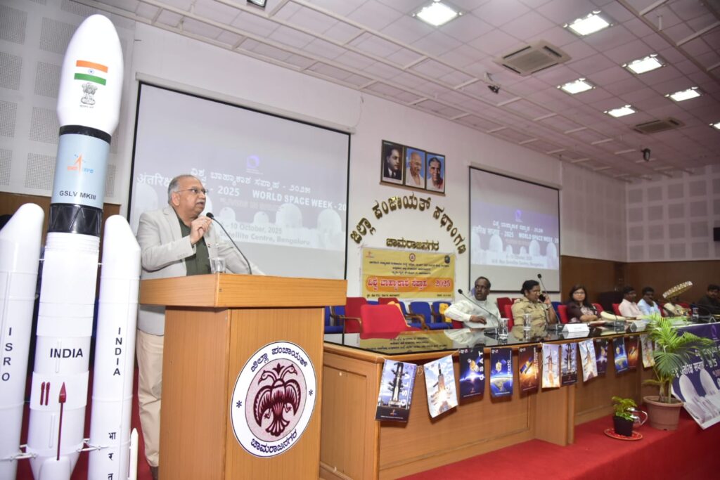 ನಗರದ ಜಿಲ್ಲಾ ಪಂಚಾಯತ್ ಸಭಾಂಗಣದಲ್ಲಿಂದು ಭಾರತೀಯ ಬಾಹ್ಯಾಕಾಶ ಸಂಶೋಧನಾ ಸಂಸ್ಥೆ (ಇಸ್ರೋ), ಯು.ಆರ್. ರಾವ್ ಉಪಗ್ರಹ ಕೇಂದ್ರ ಬೆಂಗಳೂರು, ಜಿಲ್ಲಾಡಳಿತ, ಜಿಲ್ಲಾ ಪಂಚಾಯತ್, ಗ್ರಾವಿಟಿ ಸೈನ್ಸ್ ಫೌಂಡೇಶನ್ (ರಿ), ಚಾಮರಾಜನಗರ ಇವರ ಸಂಯುಕ್ತಾಶ್ರಯದಲ್ಲಿ ವಿಶ್ವ ಬಾಹ್ಯಾಕಾಶ ಸಪ್ತಾಹ ಅಂಗವಾಗಿ ಹಮ್ಮಿಕೊಳ್ಳಲಾಗಿದ್ದ ವಿದ್ಯಾರ್ಥಿ ಕಾರ್ಯಾಗಾರ ಮತ್ತು ವಸ್ತು ಪ್ರದರ್ಶನ ಉದ್ಘಾಟಿಸಿ ಅವರು ಮಾತನಾಡಿದರು.