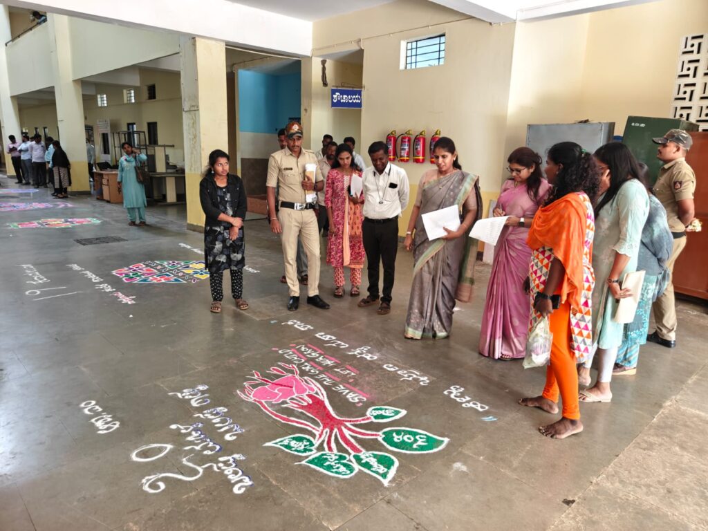 ಜಿಲ್ಲಾಧಿಕಾರಿ, ಜಿಲ್ಲಾ ಪಂಚಾಯತ್ ಮುಖ್ಯ ಕಾರ್ಯನಿರ್ವಾಹಕ ಅಧಿಕಾರಿಗಳಿಂದ ರಂಗೋಲಿ ಸ್ಪರ್ಧೆ ವೀಕ್ಷಣೆ-ಮೆಚ್ಚುಗೆ