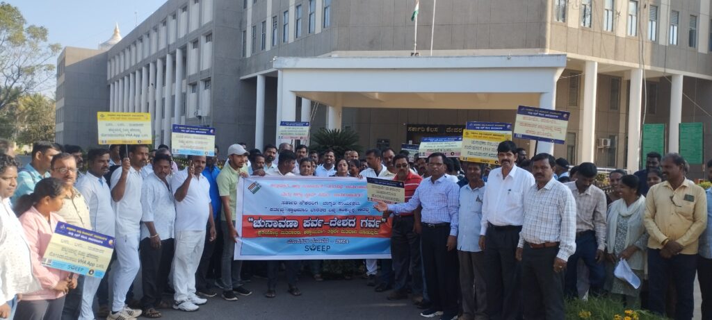 ಜಿಲ್ಲಾಡಳಿತ, ಜಿಲ್ಲಾ ಪಂಚಾಯತ್, ನಗರಸಭೆ ಹಾಗೂ ಜಿಲ್ಲಾ ಸ್ವೀಪ್ ಸಮಿತಿ ಸಹಯೋಗದಲ್ಲಿ ಚಾಮರಾಜೇಶ್ವರ ದೇವಾಲಯದ ಆವರಣದಿಂದ ಜಿಲ್ಲಾಡಳಿತ ಭವನದವರೆಗೆ ಹಮ್ಮಿಕೊಳ್ಳಲಾಗಿದ್ದ ವಾಕಥಾನ್ ನಡಿಗೆಗೆ ಹೆಚ್ಚುವರಿ ಜಿಲ್ಲಾಧಿಕಾರಿ ಗೀತಾ ಹುಡೇದ ಅವರು ಚಾಲನೆ ನೀಡಿದರು.